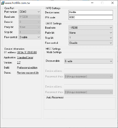 ●加強型的自動連線功能(Auto Reconnect) 可以支援一般SPP設備設定成自動連線功能.